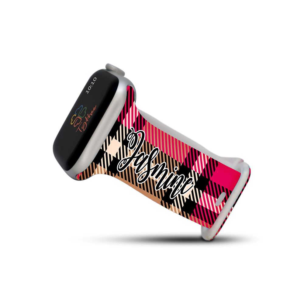 Nothing screams more fun than a Bright Holiday print! Compatible with Apple Watch Series 1,2,3,4,5,6,7 & SE. This Personalized Holiday Plaid Christmas Band will become your new favorite watch band. Made with High-Quality Silicone, this watch band is adjustable, comfortable, and stylish. Name or Monogram can be customized in any Holiday Pattern and text color of your choice. There are a wide variety of options to choose from.