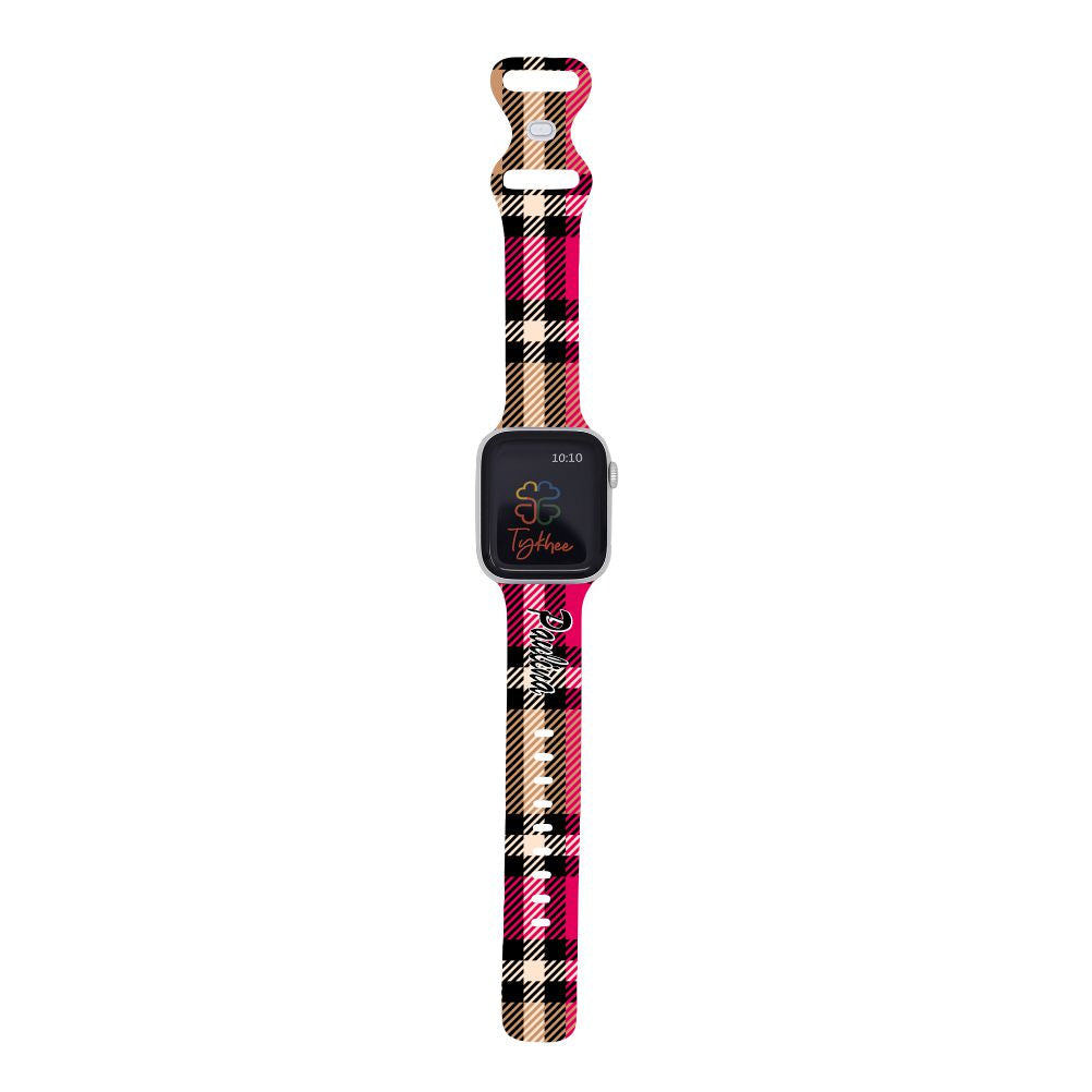 Personalized Holiday Plaid Watch Band with Name for Apple Watch (H17 Pattern)