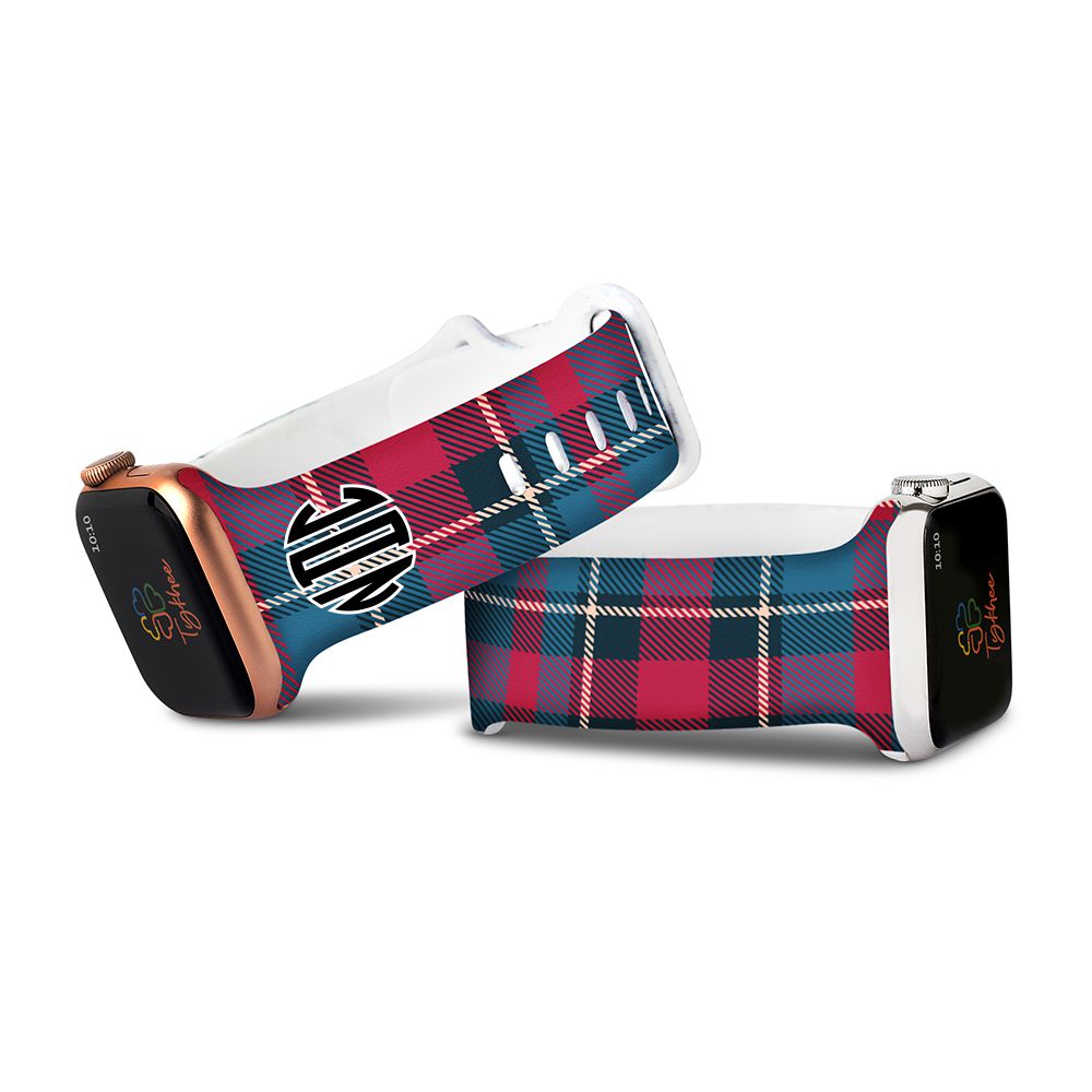 Personalized Holiday Plaid Watch Band with Monogram for Apple Watch (H11 Pattern)