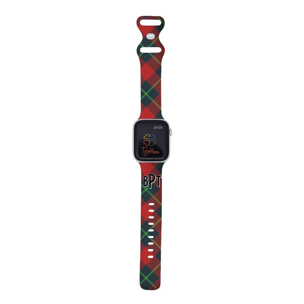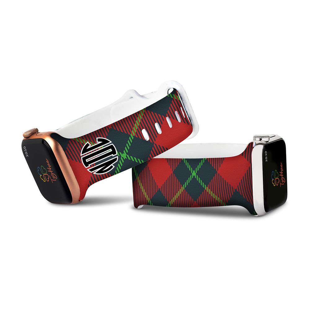 Personalized Holiday Plaid Watch Band with Monogram for Apple Watch (H12 Pattern)