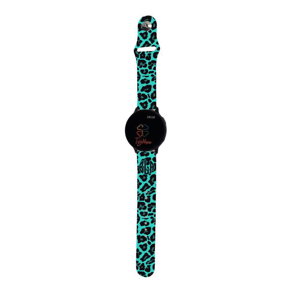 Personalized Azure Blue Leopard 20mm Watch Band with Monogram for Samsung, Garmin and Others