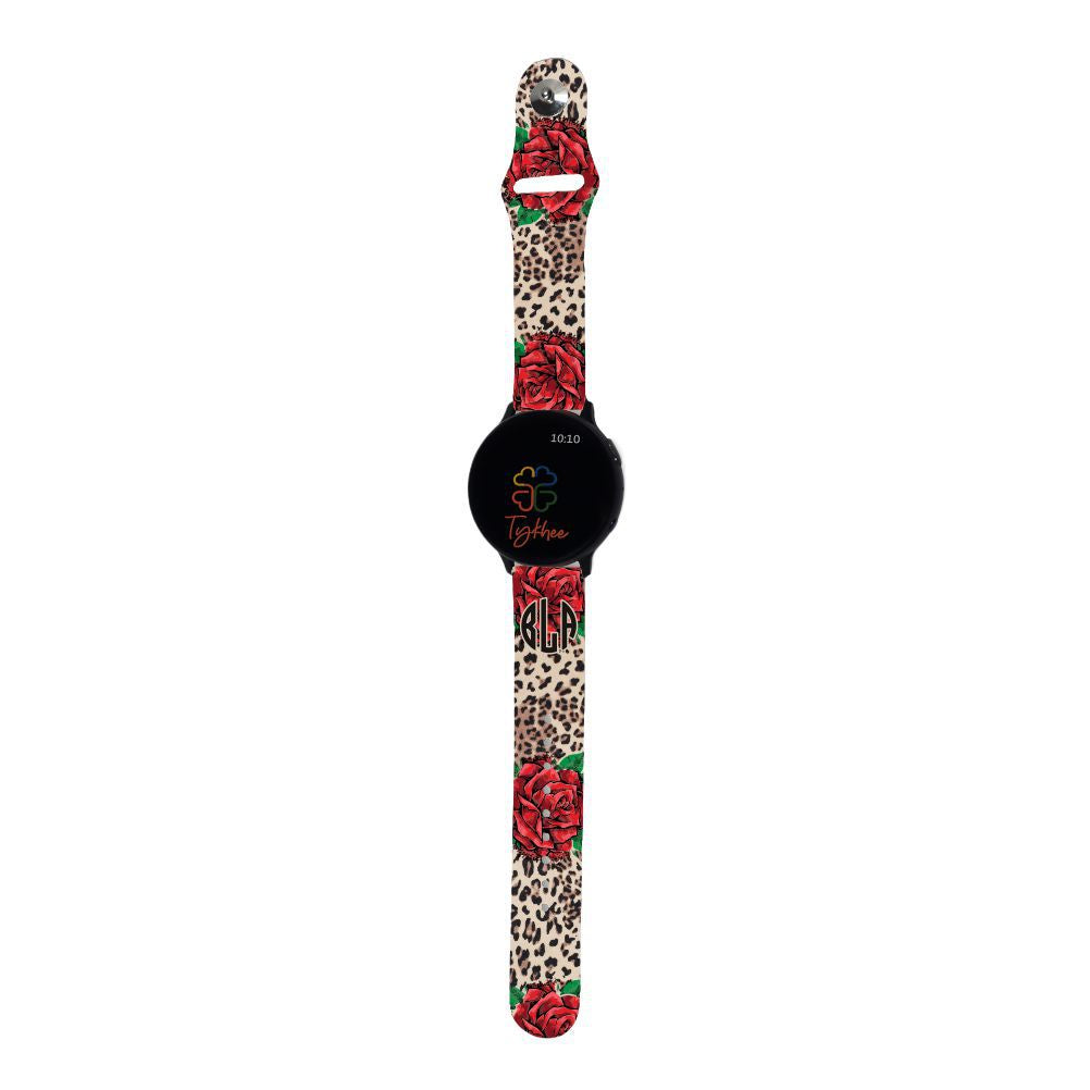 Personalized Leopard + Roses 20mm Watch Band with Monogram for Samsung, Garmin and Others