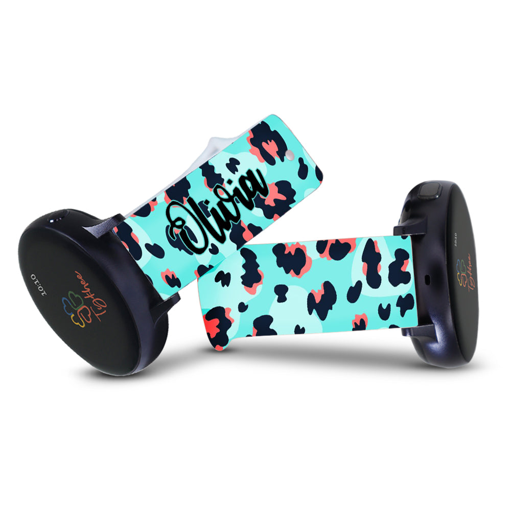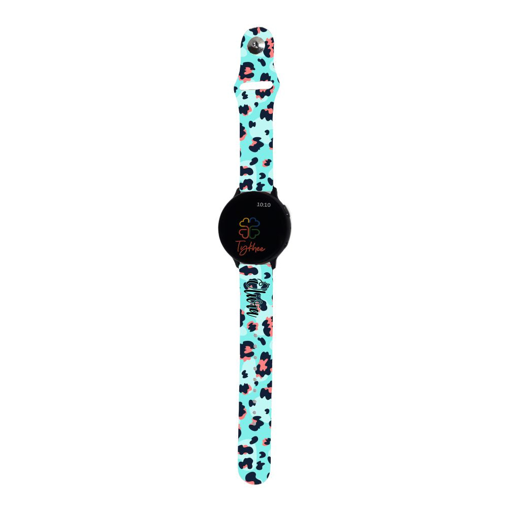 Personalized Peach & Blue Leopard 20mm Watch Band with Name for Samsung, Garmin and Others