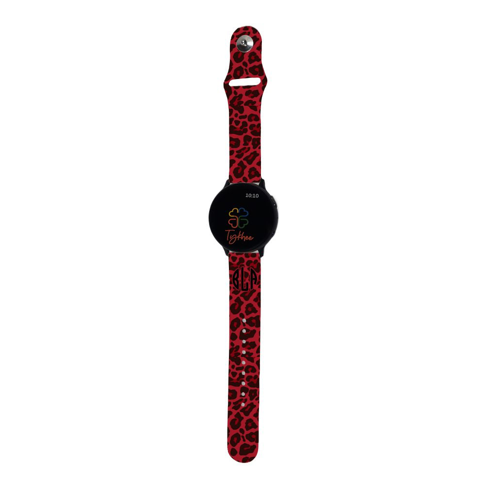 Personalized Red Leopard 20mm Watch Band with Monogram for Samsung, Garmin and Others