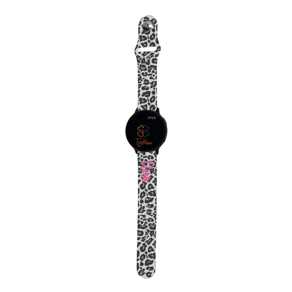 Personalized Tan Leopard 20mm Watch Band with Name for Samsung, Garmin and Others