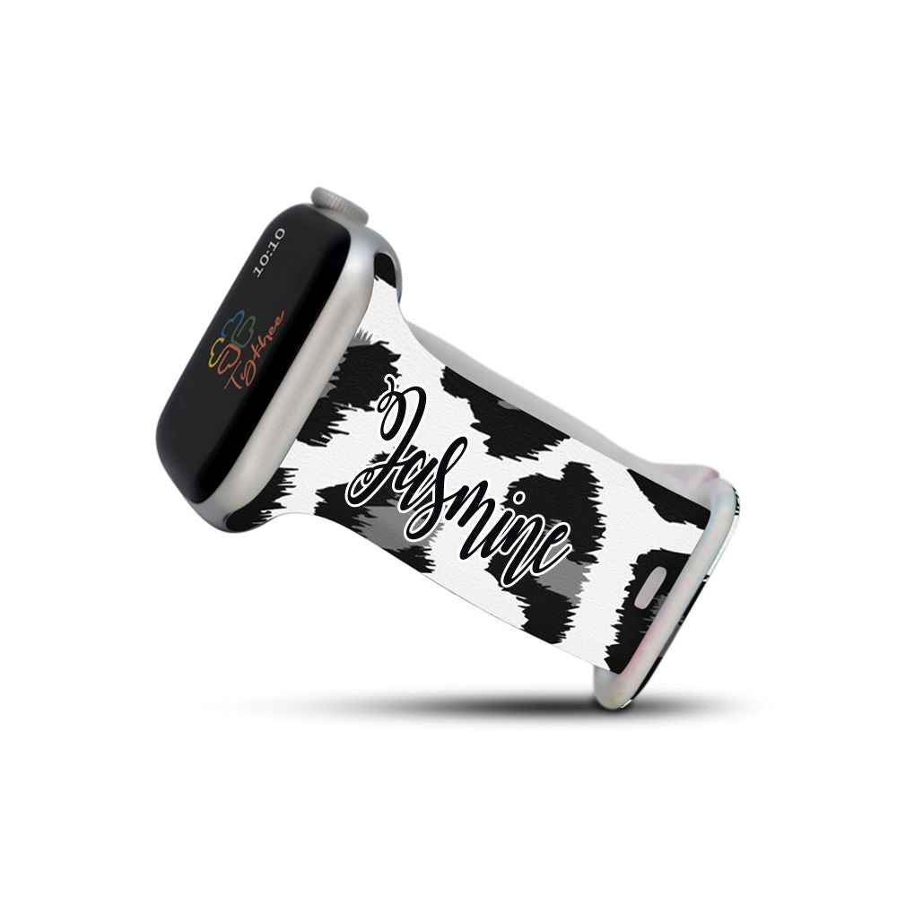 Personalized Black & White Leopard Watch Band with Name for Apple Watch