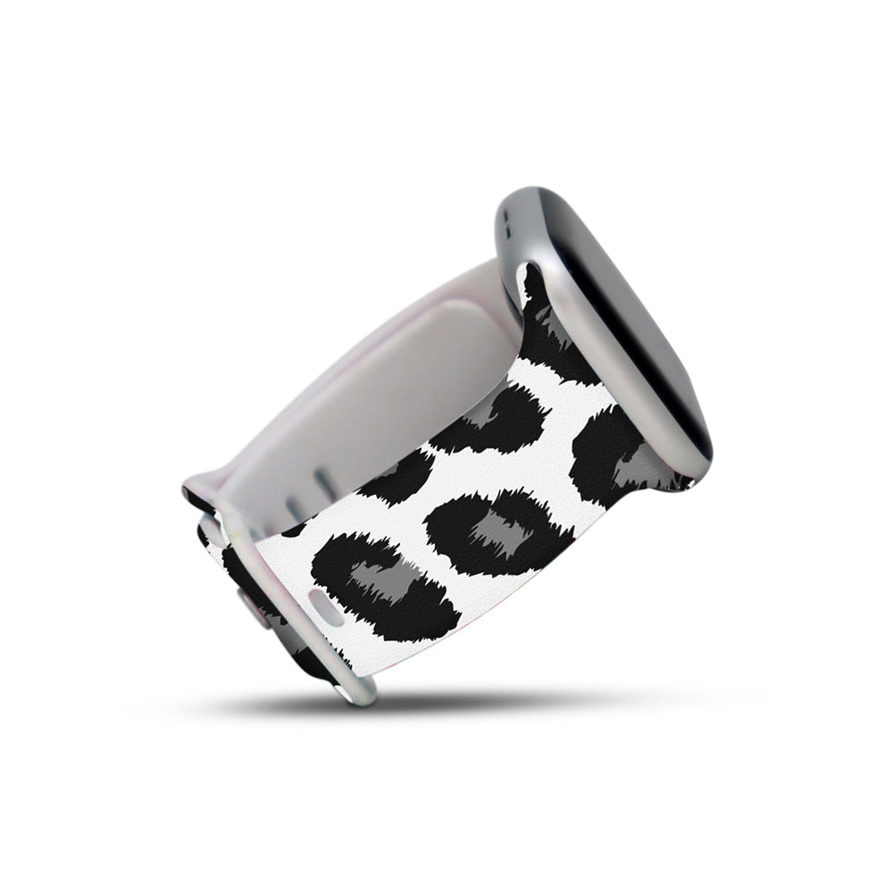 Nothing screams fun more than a Black & White Leopard print! Compatible with Apple Watch. This Personalized Black & White Leopard Band will become your new favorite watch band. Made with high-quality silicone, this watch band is adjustable, comfortable, and super cute. It can be customized in any leopard print pattern and color of your choice. Whether you want a plain blue-colored strap with black spots for work or a funky colorful band for a night out, there are a variety of options to choose from.