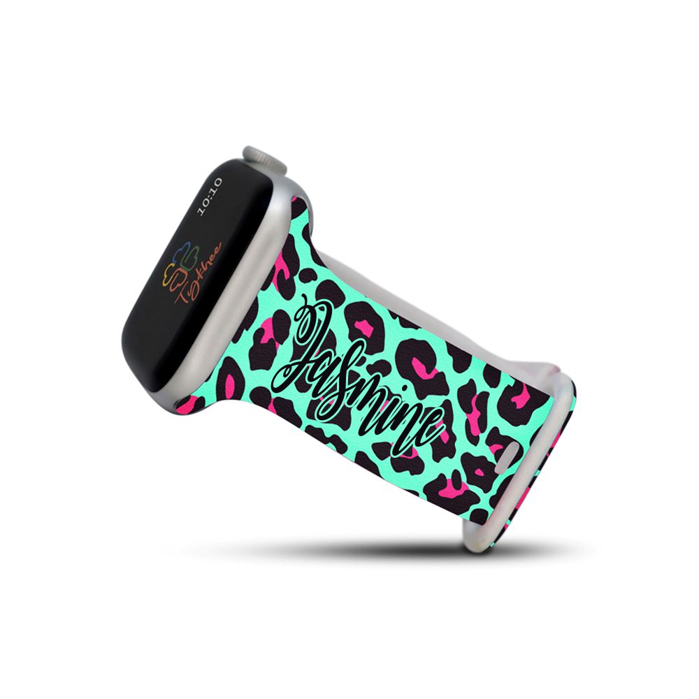 Personalized Blue & Pink Leopard Watch Band with Name for Apple Watch