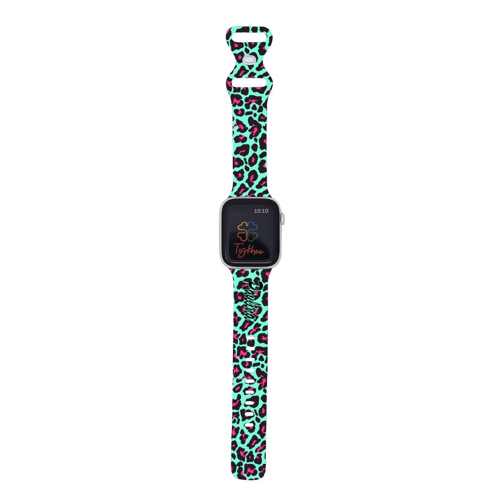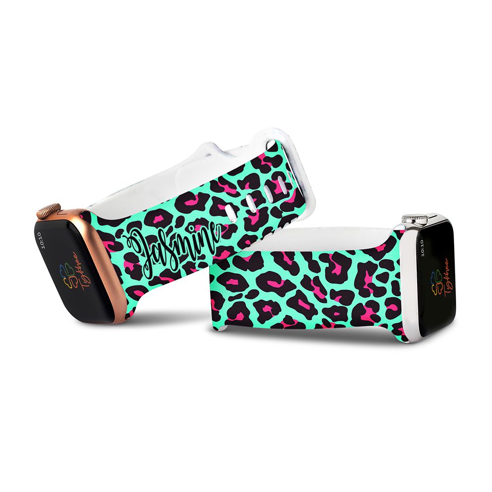 Nothing screams fun more than a Blue & Pink Leopard print! Compatible with Apple Watch. This Personalized Blue & Pink Leopard Band will become your new favorite watch band. Made with high-quality silicone, this watch band is adjustable, comfortable, and super cute. It can be customized in any leopard print pattern and color of your choice. Whether you want a plain blue-colored strap with black spots for work or a funky colorful band for a night out, there are a variety of options to choose from.