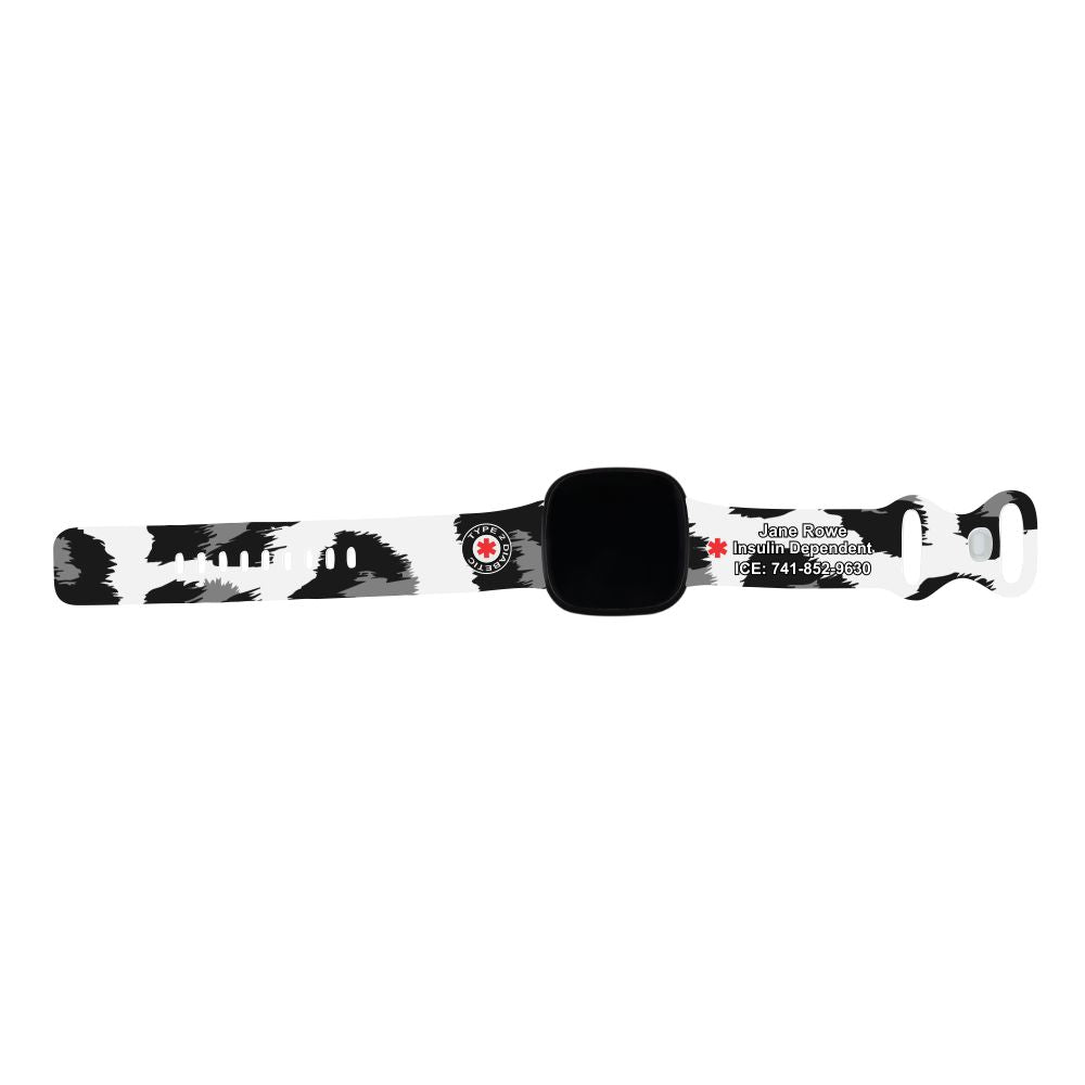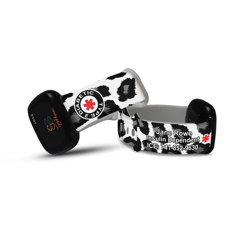 Personalized Medical Alert Watch Band for Fitbit Versa 3 & Fitbit Sense (Black & White Leopard)