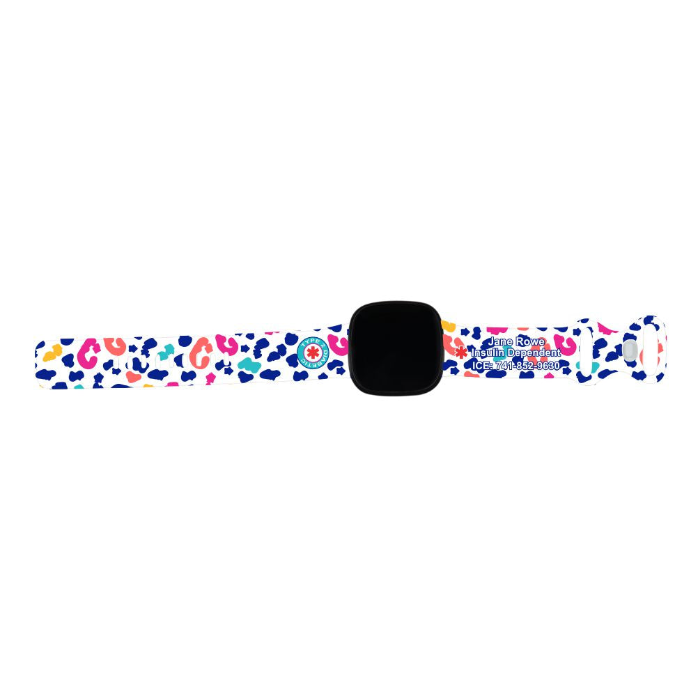 Personalized Medical Alert Watch Band for Fitbit Versa 3 & Fitbit Sense (Spring Leopard)