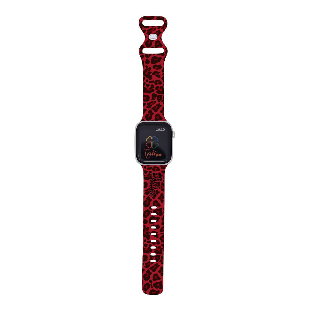 Personalized Red Leopard Watch Band with Name for Apple Watch