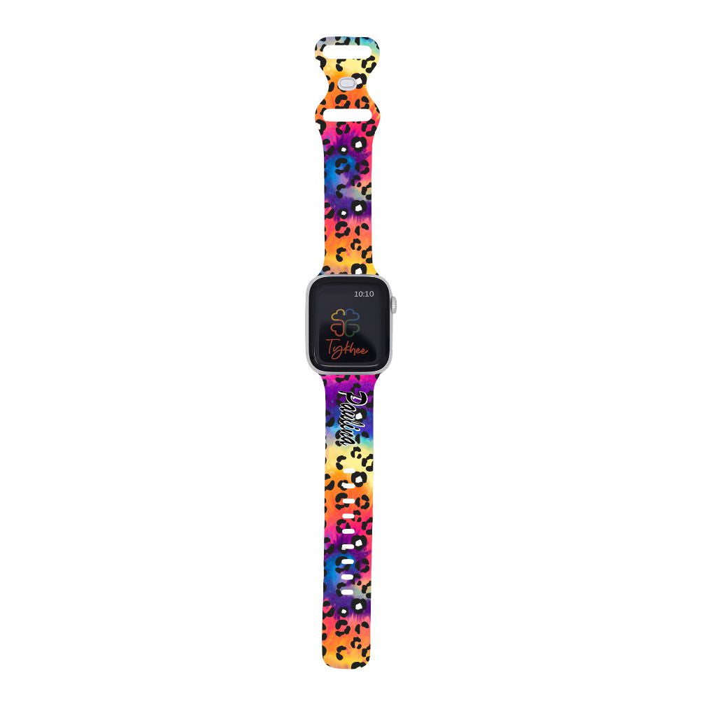 Personalized Tie Dye Leopard Watch Band with Name for Apple Watch