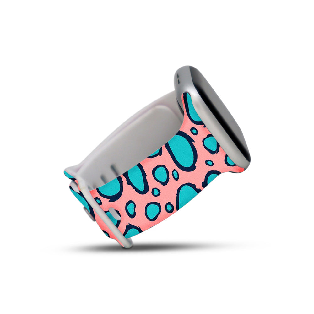 Nothing screams fun more than a Turquoise Leopard print! Compatible with Apple Watch. This Personalized Turquoise Leopard Band will become your new favorite watch band. Made with high-quality silicone, this watch band is adjustable, comfortable, and super cute. It can be customized in any leopard print pattern and color of your choice. Whether you want a plain blue-colored strap with black spots for work or a funky colorful band for a night out, there are a variety of options to choose from.