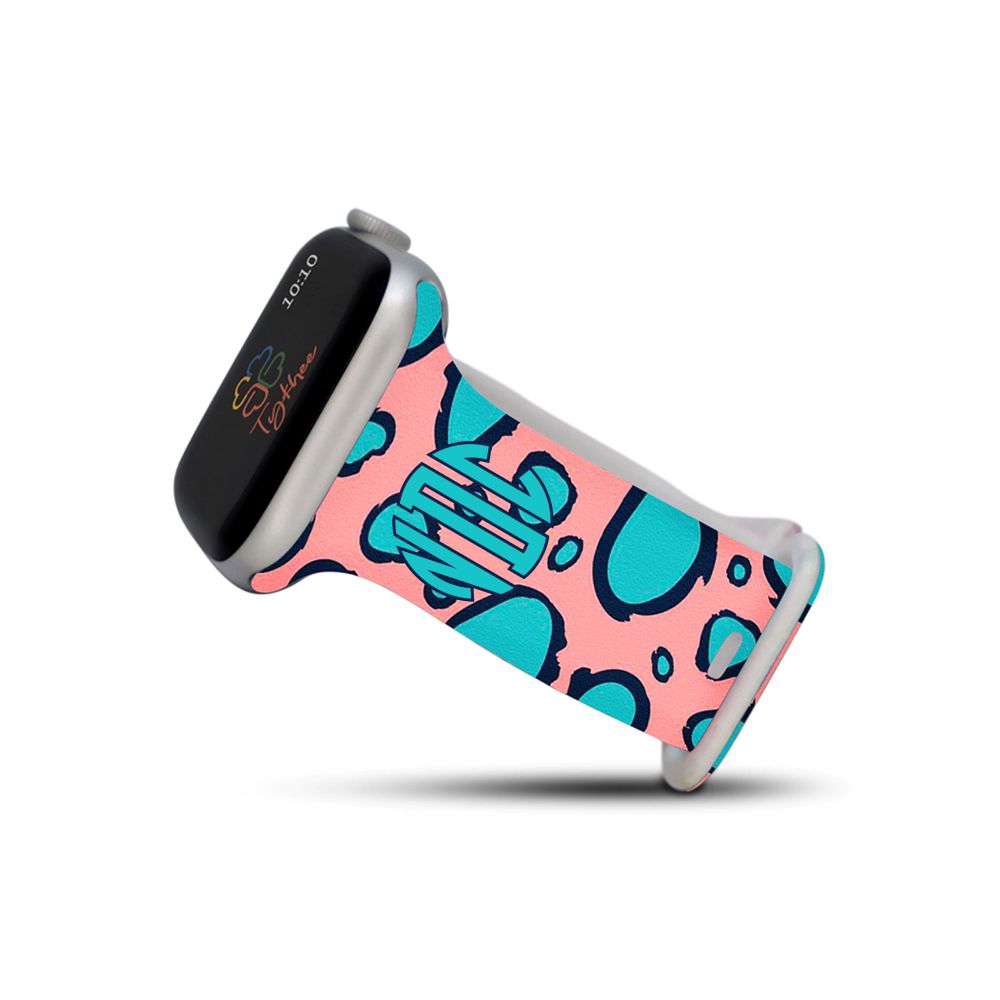 Personalized Turquoise Leopard Watch Band with Monogram for Apple Watch