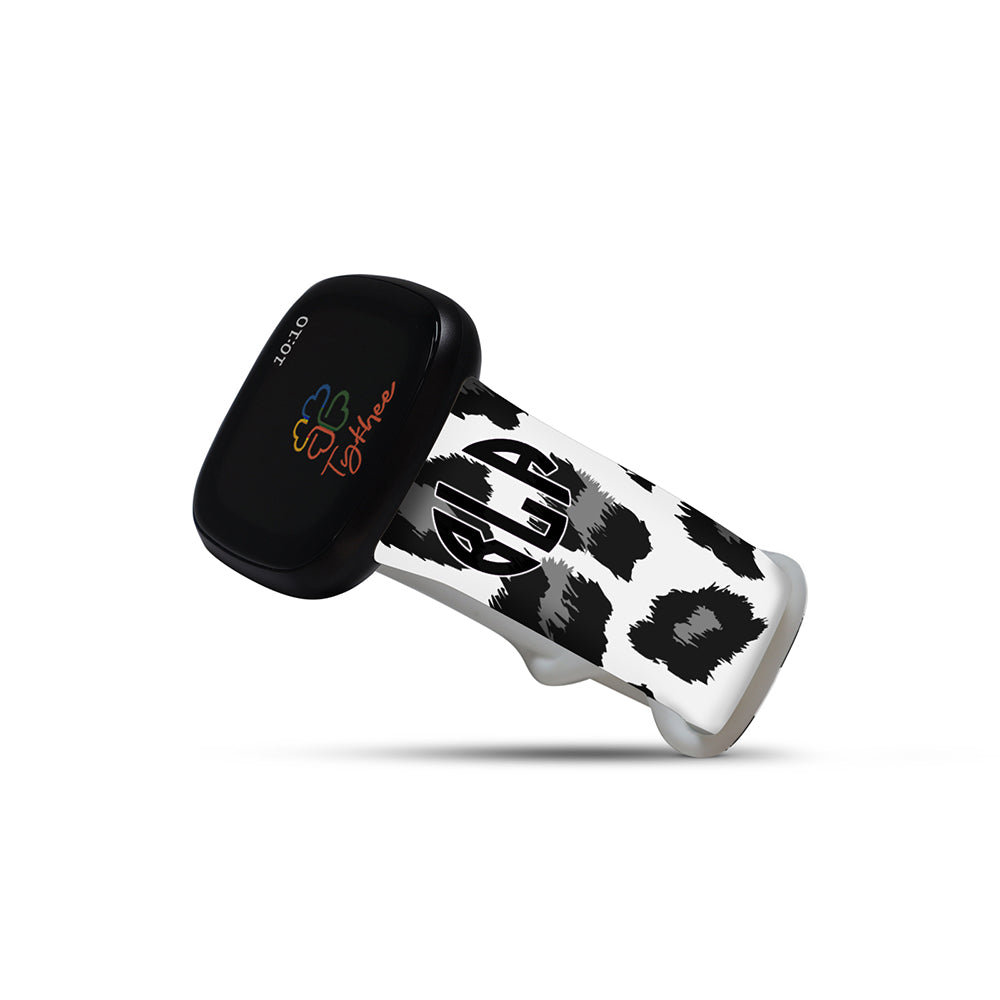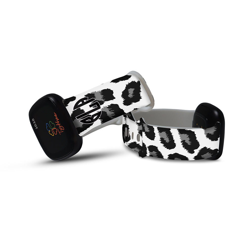 Personalized Black & White Leopard Watch Band with Monogram for Fitbit Versa 3 & Fitbit Sense