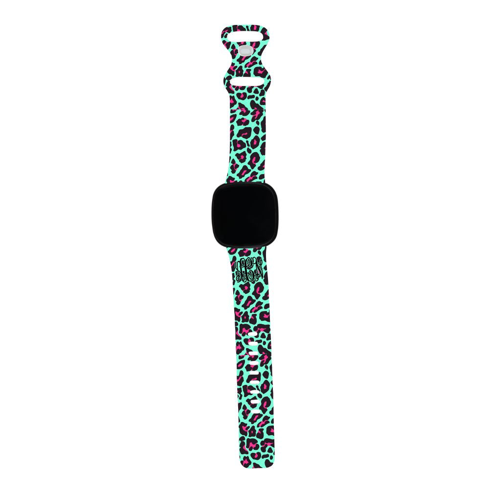 Personalized Blue & Pink Leopard Watch Band with Monogram for Fitbit Versa 3 & Fitbit Sense