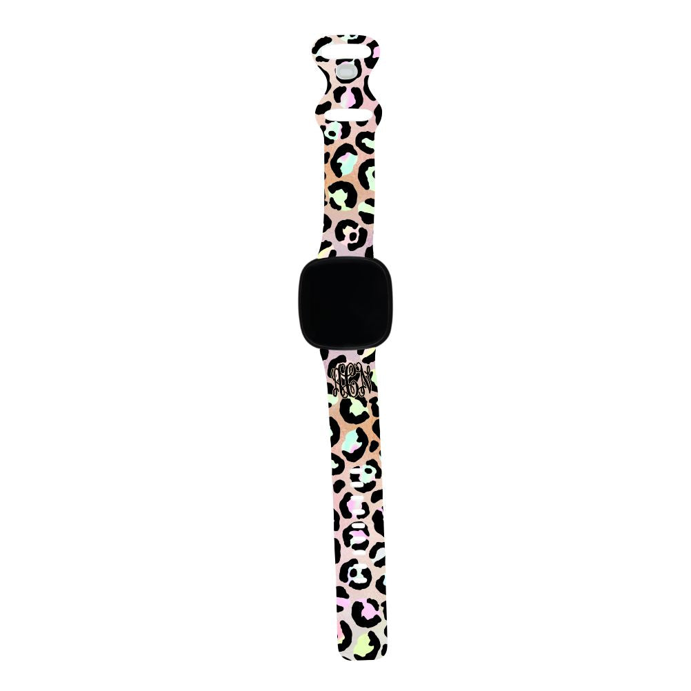 Personalized Rainbow Leopard Watch Band with Monogram for Fitbit Versa 3 & Fitbit Sense