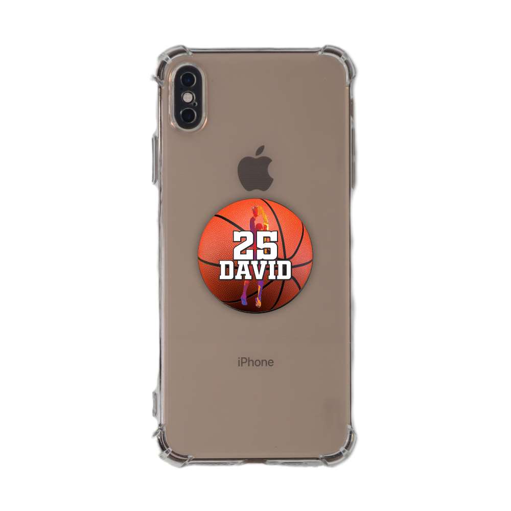 Show your love for Basketball with this personalized phone grip. The hinge-based phone grip supports multiple heights and holding options. It is made from durable plastic. The photo is protected by an epoxy dome so it won't scratch or fade easily.