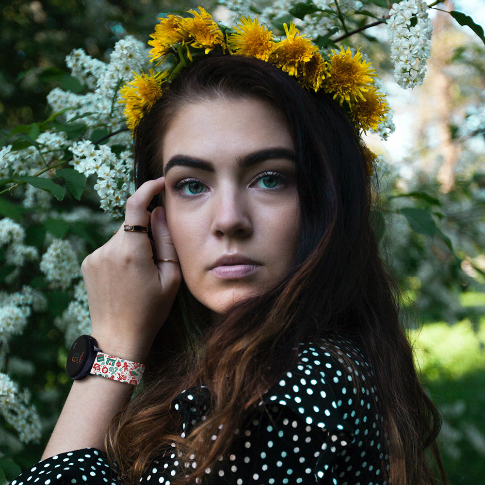 Nothing screams fun more than a Holiday print! Compatible with the Samsung, Garmin, Verizon Gizmo, and other watches using 20mm band. This Personalized Holiday Band will become your new favorite watch band. Made with high-quality silicone, this watch band is adjustable, comfortable, and super cute. It can be customized in any holiday print pattern and color of your choice. Whether you want a plain blue-colored strap with black spots for work or a funky colorful band for a night out, there are a variety of options to choose from.