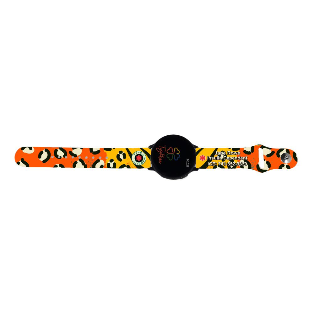 Personalized Medical Alert 20mm Watch Band for Samsung, Garmin and Others (Yellow & Orange Leopard)