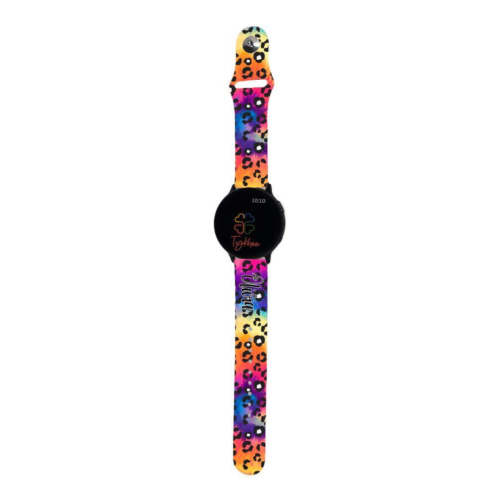 Personalized Tie Dye Leopard 20mm Watch Band with Name for Samsung, Garmin and Others