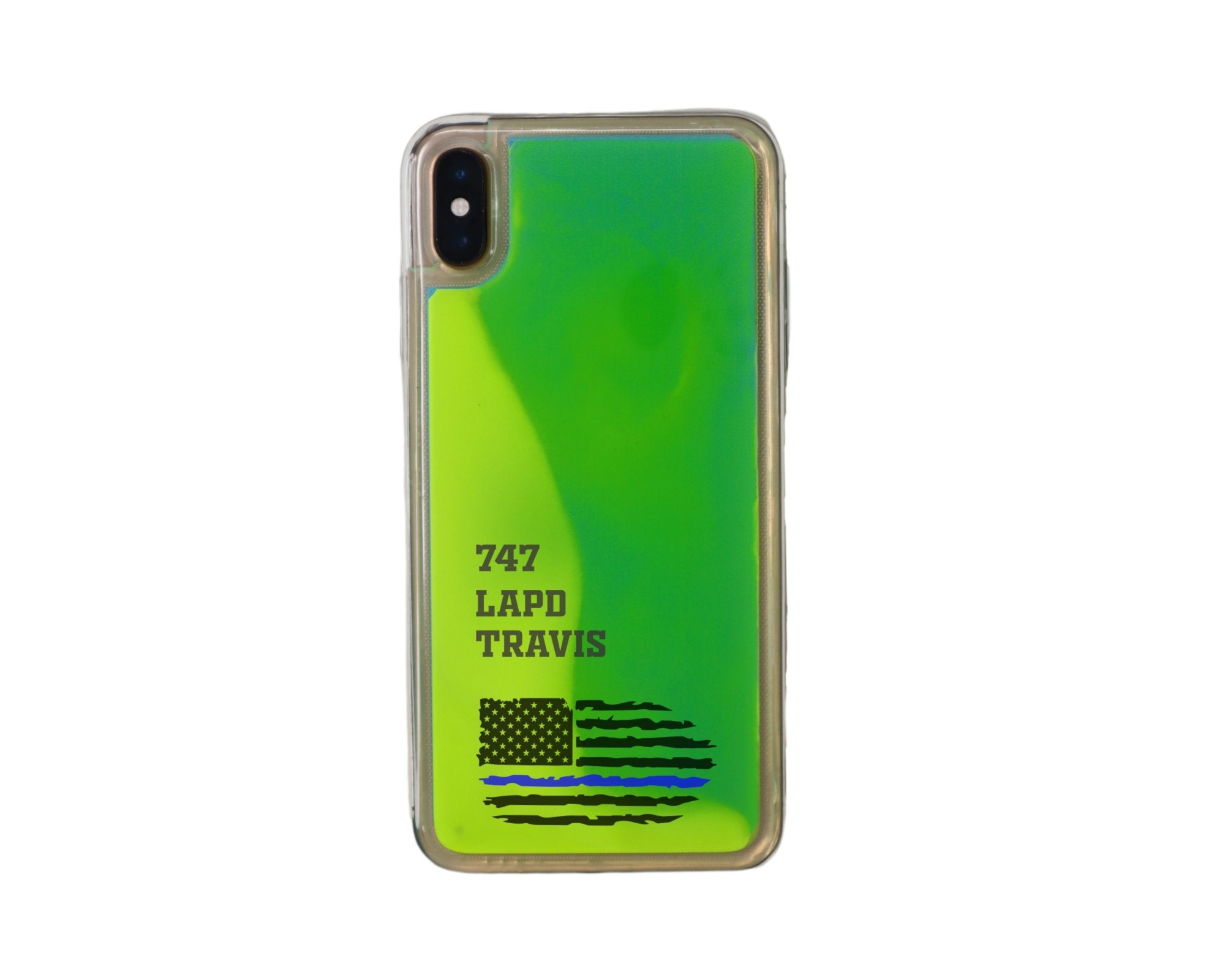 Custom Thin Blue Line Flag iPhone Case in Yellow-Green Moving Quicksand