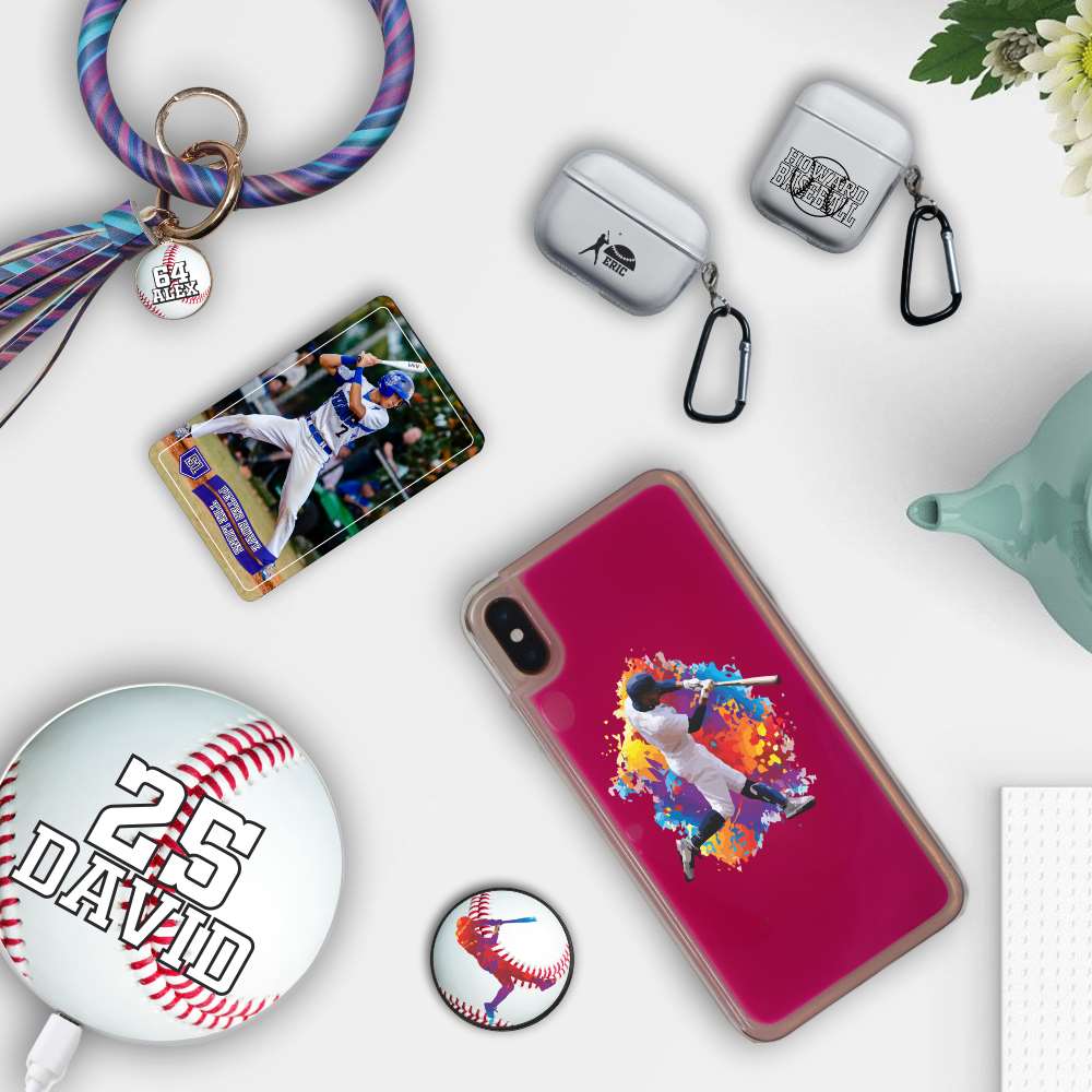 Custom Baseball Partial Figure iPhone Case in Pink Moving Quicksand