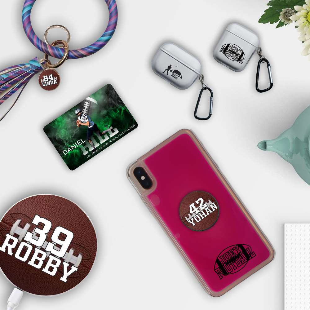 Custom Football Emblem iPhone Case in Pink Moving Quicksand