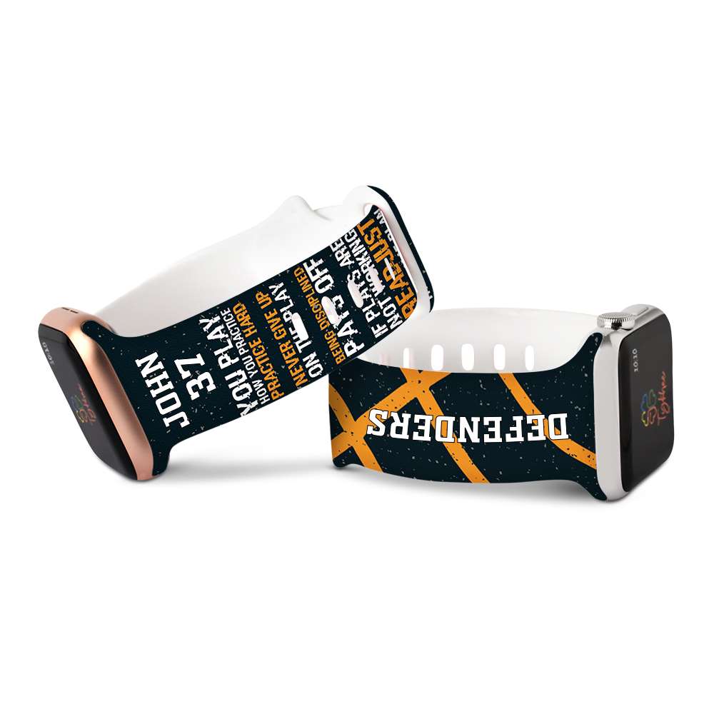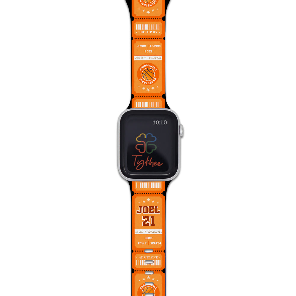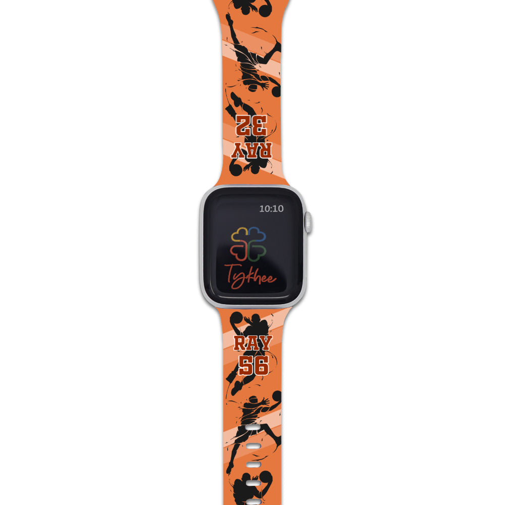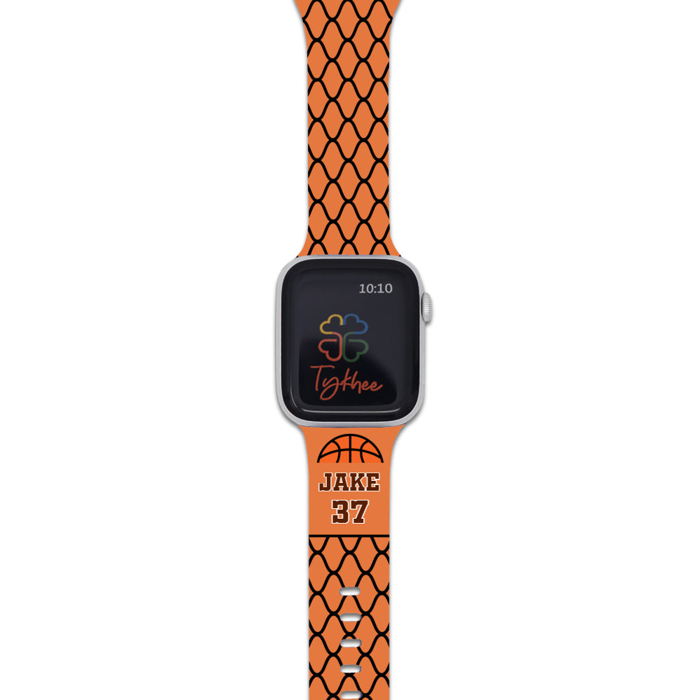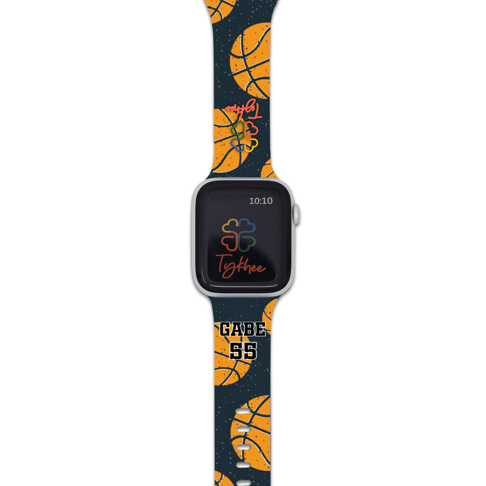 Show your love for Basketball with this Personalized Basketball Apple Watch Band. This basketball watch band is adjustable, secure, comfortable, and screams basketball. It can be customized to add a name, jersey number, or team name.