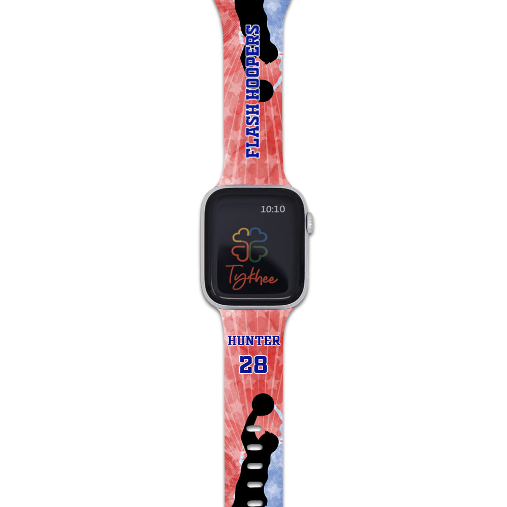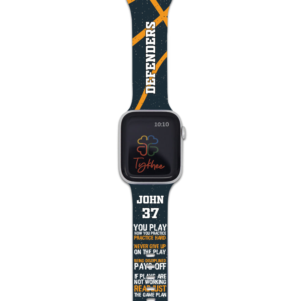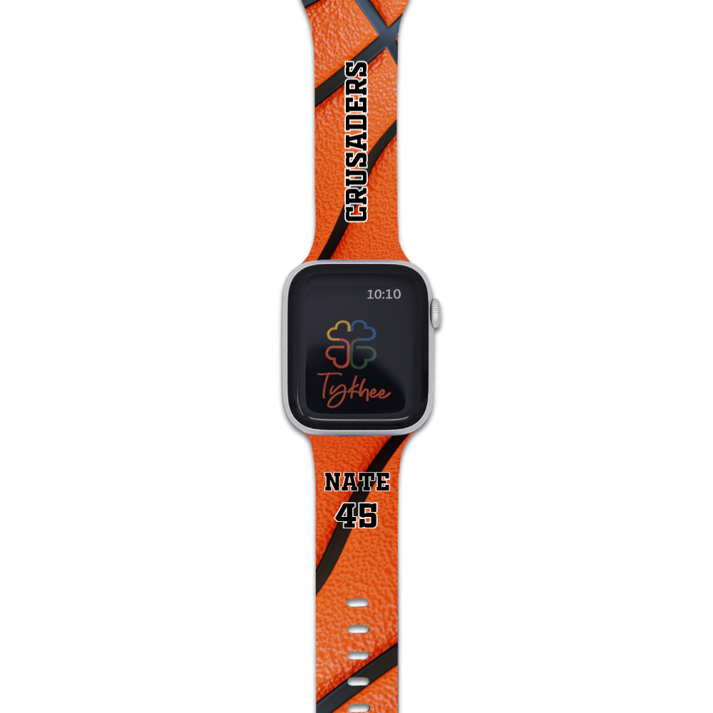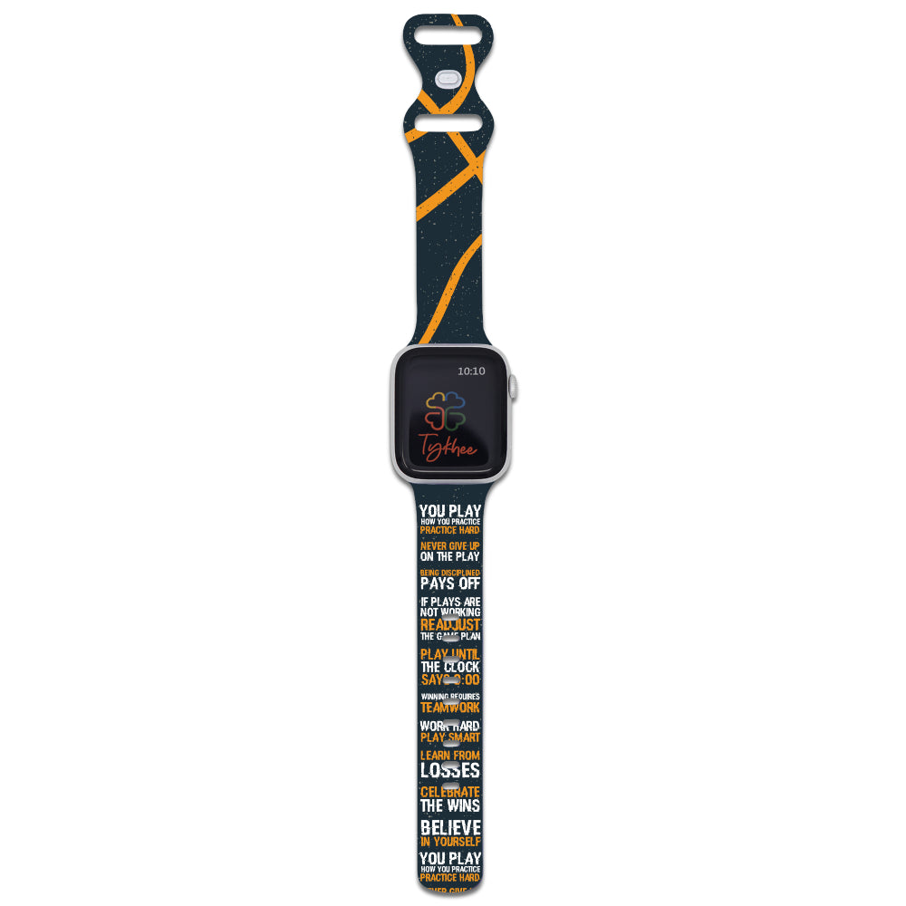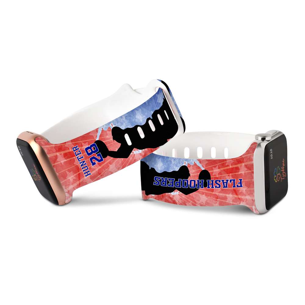 Show your love for Basketball with this Personalized Basketball Apple Watch Band. This basketball watch band is adjustable, secure, comfortable, and screams basketball. It can be customized to add a name, jersey number, or team name.