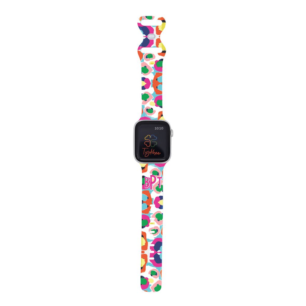 Nothing screams fun more than a Boho Leopard print! Compatible with Apple Watch. This Personalized Boho Leopard Band will become your new favorite watch band. Made with high-quality silicone, this watch band is adjustable, comfortable, and super cute. It can be customized in any leopard print pattern and color of your choice. Whether you want a plain blue-colored strap with black spots for work or a funky colorful band for a night out, there are a variety of options to choose from.