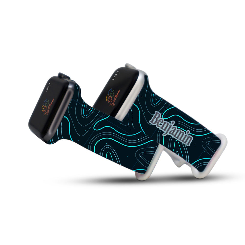 These watch bands are perfect for people who love geometric designs, specifically men. Made with high-quality silicone, this watch band is adjustable, secure, comfortable. It can be customized to add your name.