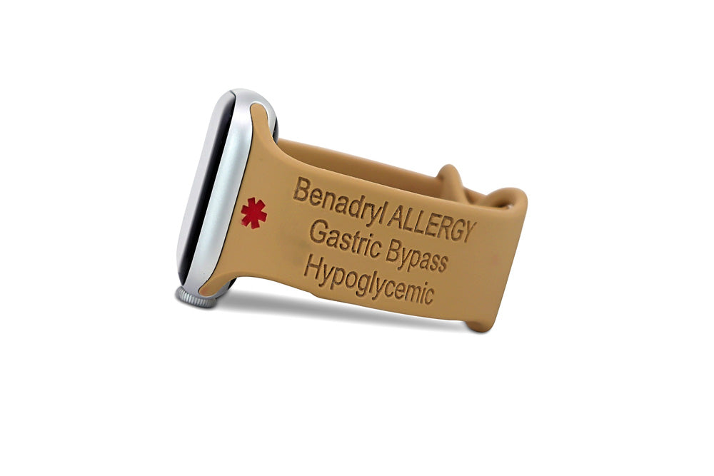 Customize this Apple band by adding your personal details, including a Medical Alert Symbol or custom text if you have any chronic or serious medical condition and emergency contact information.