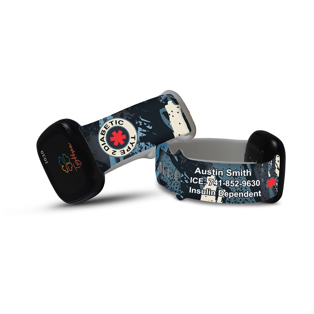 Personalized Medical Alert Watch Band for Fitbit Versa 3 & Fitbit Sense (M14 Pattern)