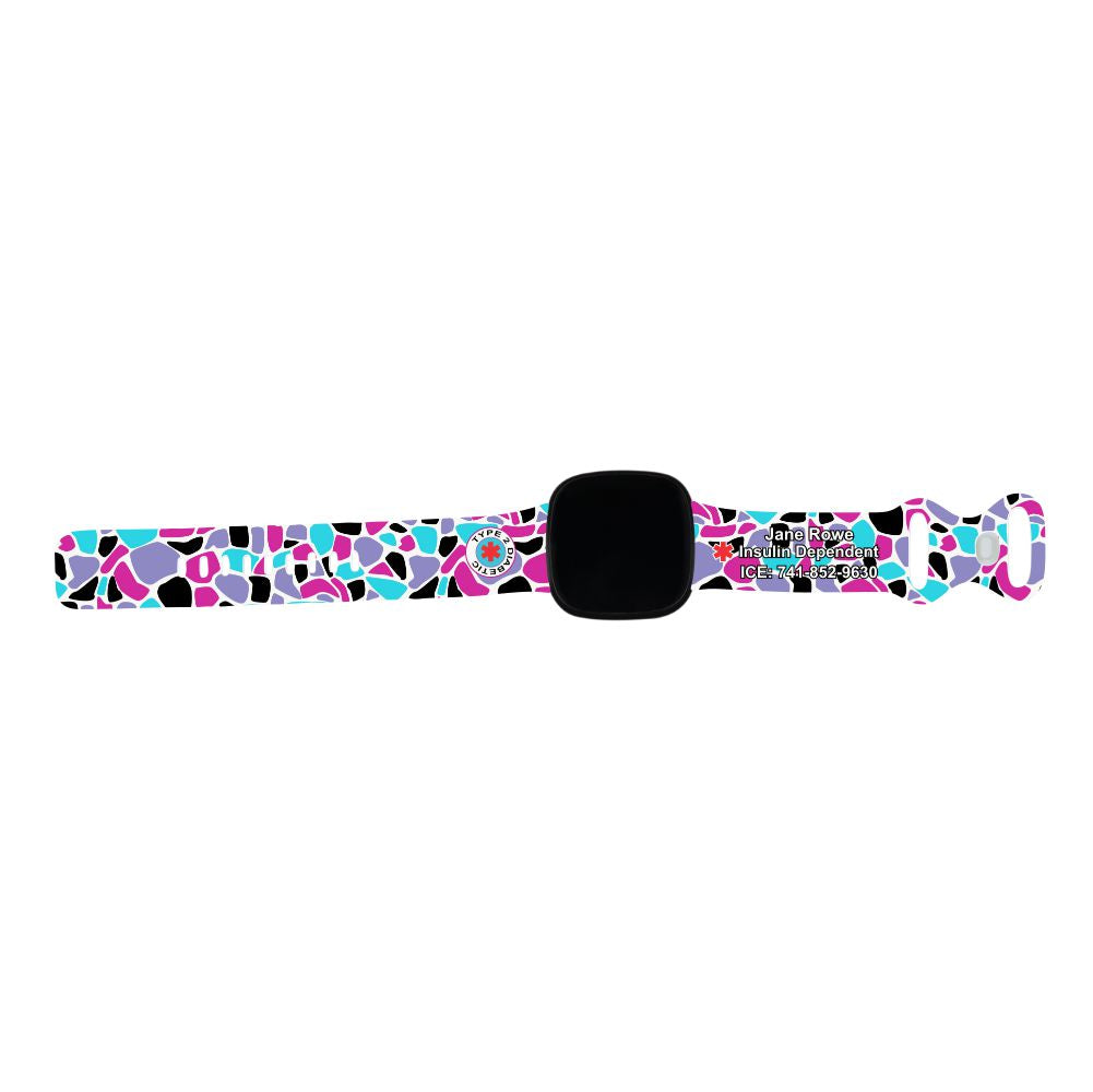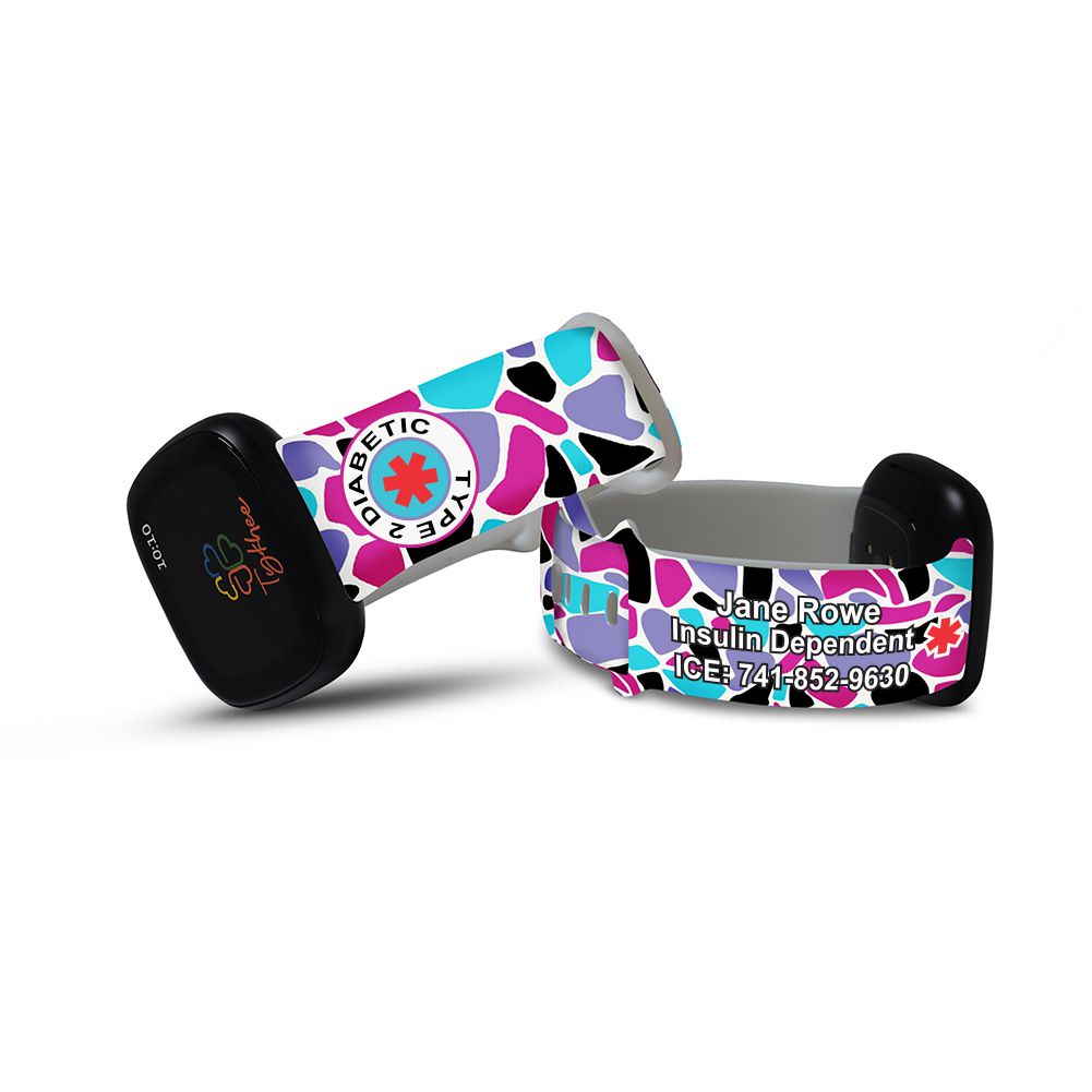 This Personalized Medical Alert band is compatible with the Fitbit Versa 3 & Fitbit Sense. Made with high-quality silicone, this watch band is adjustable, comfortable, and super cute. It can be customized in any leopard print pattern and color of your choice. Whether you want a plain blue-colored strap with black spots for work or a funky colorful band for a night out, there are a variety of options to choose from.