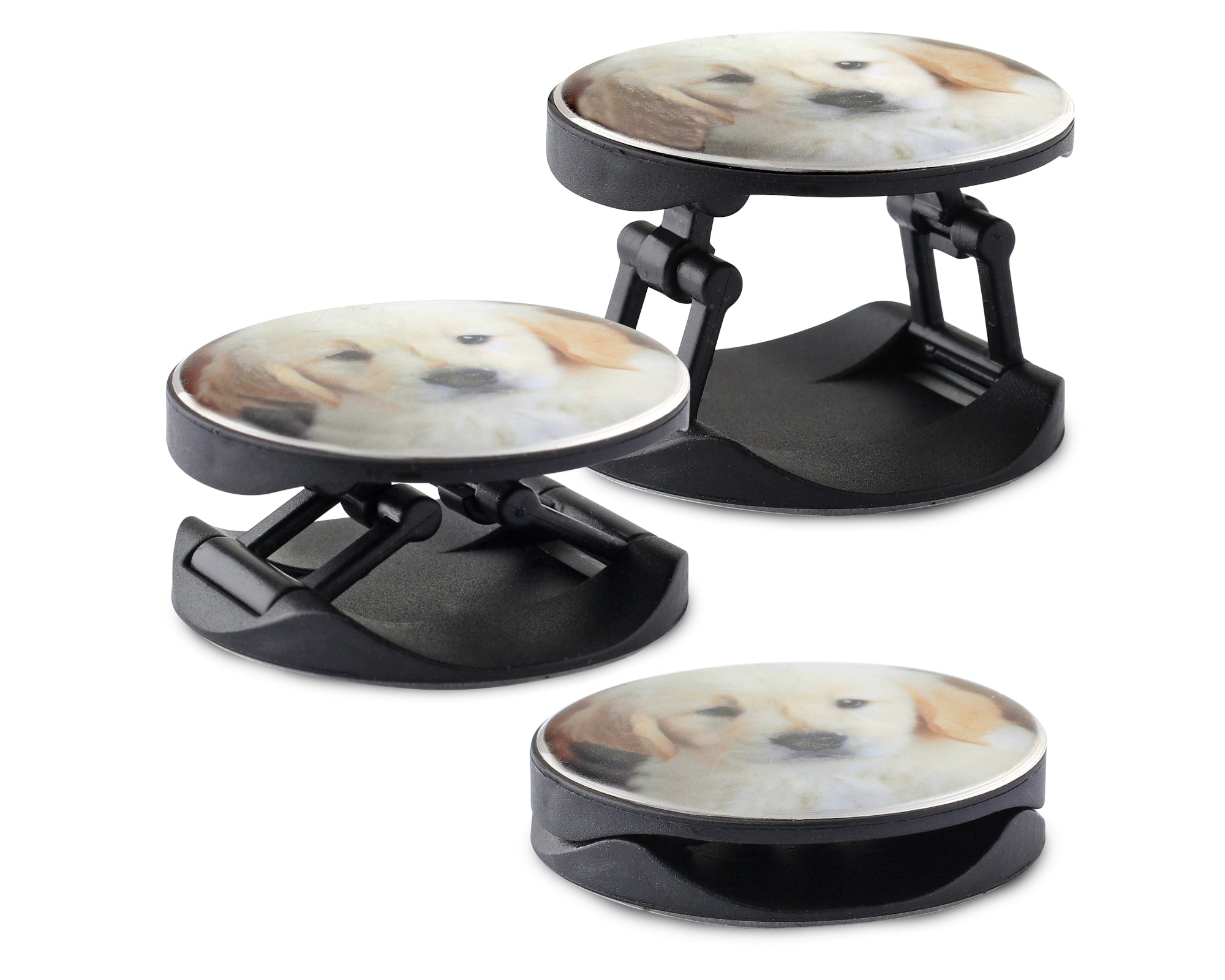 Personalize phone grip with your favorite photo to take your memory with you all the time. The hinge-based phone grip supports multiple heights and holding options. It is made from durable plastic. The photo is protected by an epoxy dome so it won't scratch or fade easily.